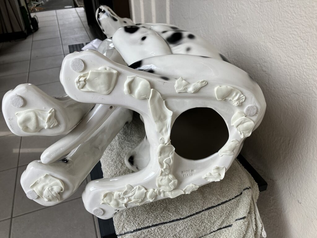 イタリア製の陶器で作られたダルメシアンの置物。白地に黒い斑点、つぶらな瞳、すっと伸びた姿勢。